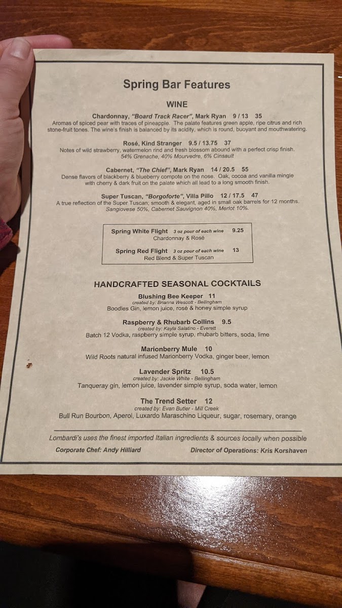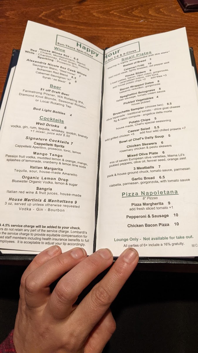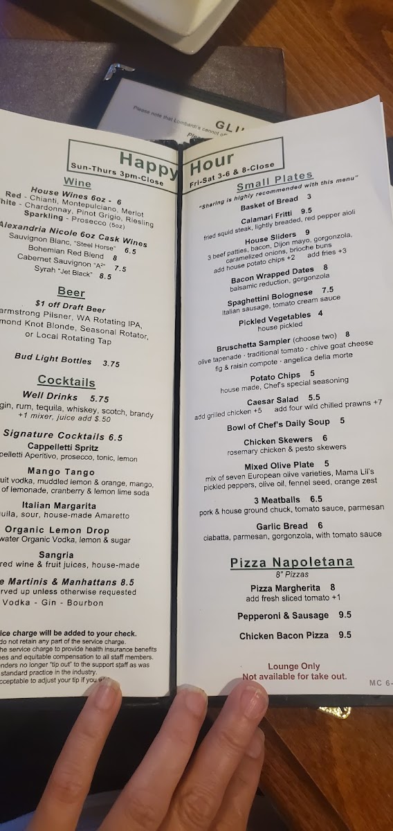 Lombardi's in Mill Creek Menu